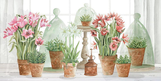 Flowers and Terrarium White Modern Wood Framed Art Print with Double Matting by Jacobs, Cindy
