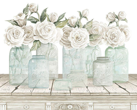 Farmhouse Roses White Modern Wood Framed Art Print with Double Matting by Jacobs, Cindy