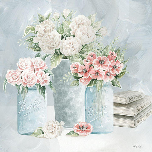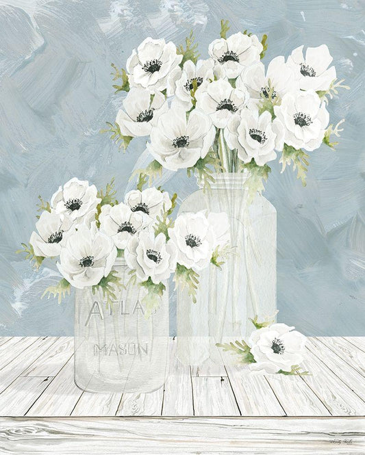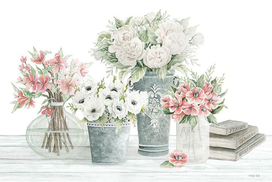 Farmhouse Florals I White Modern Wood Framed Art Print with Double Matting by Jacobs, Cindy