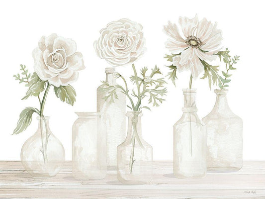 Bottles and Flowers I White Modern Wood Framed Art Print with Double Matting by Jacobs, Cindy