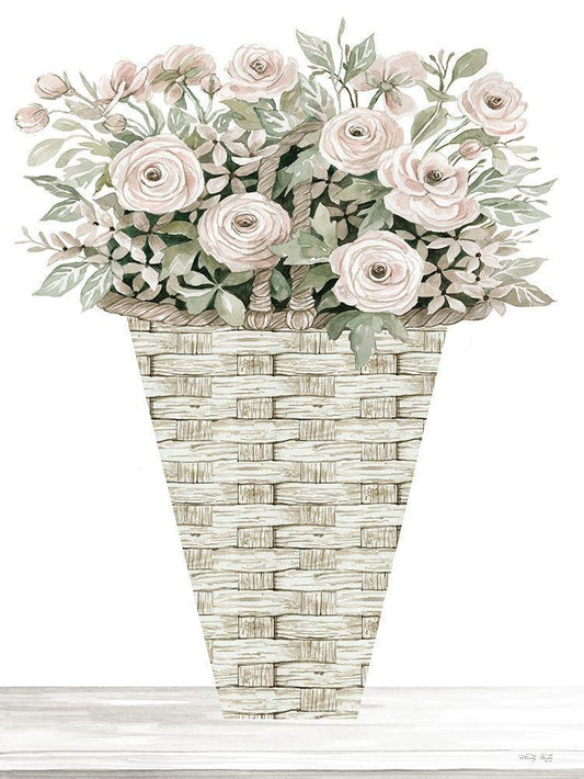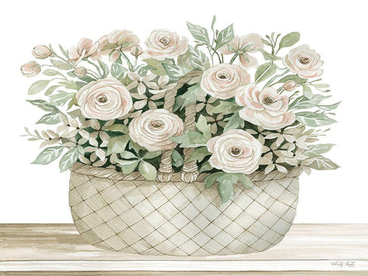 Basket of Ranunculus White Modern Wood Framed Art Print with Double Matting by Jacobs, Cindy