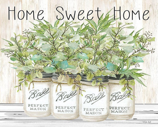 Home Sweet Home Ball Jars White Modern Wood Framed Art Print with Double Matting by Jacobs, Cindy