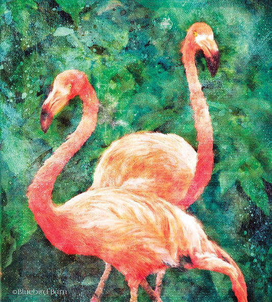 Flamingos White Modern Wood Framed Art Print with Double Matting by Bluebird Barn