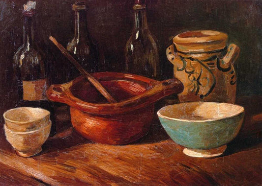 Still Life Earthenware And Bottles White Modern Wood Framed Art Print with Double Matting by Van Gogh, Vincent
