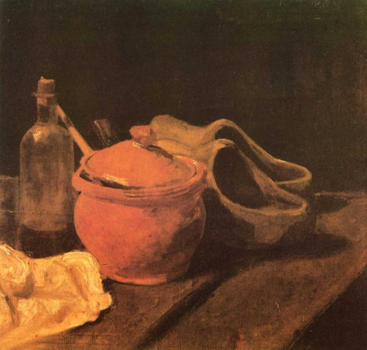 Still Life Earthenware Bottle And Clogs White Modern Wood Framed Art Print with Double Matting by Van Gogh, Vincent