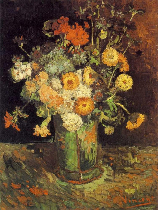 Vase Zinnias And Other Flowers White Modern Wood Framed Art Print with Double Matting by Van Gogh, Vincent