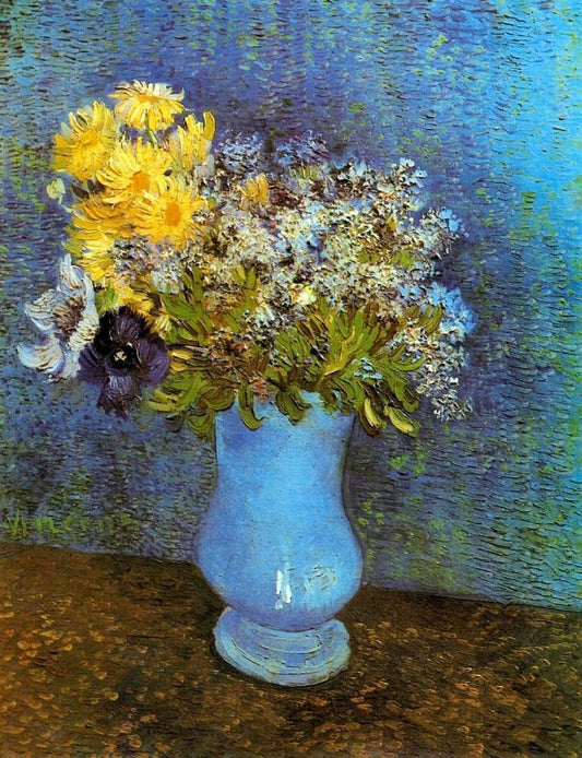 Vase Daisies And Anemones White Modern Wood Framed Art Print with Double Matting by Van Gogh, Vincent
