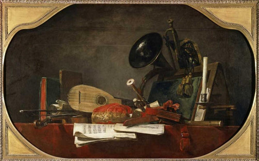 Attributes of Music White Modern Wood Framed Art Print with Double Matting by Chardin, Jean-Baptiste-Simeon
