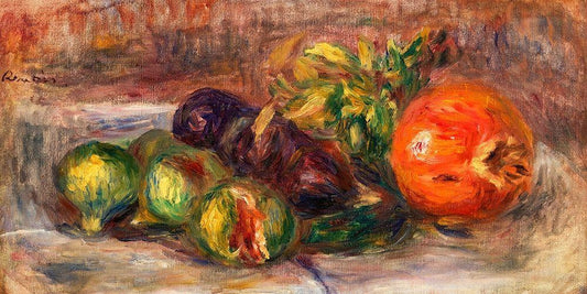 Pomegranate and Figs 1917 White Modern Wood Framed Art Print with Double Matting by Renoir, Pierre-Auguste