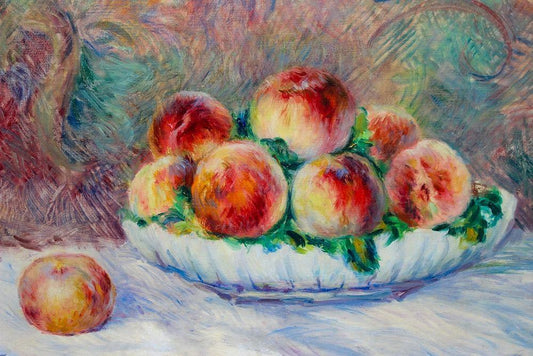 Peaches White Modern Wood Framed Art Print with Double Matting by Renoir, Pierre-Auguste