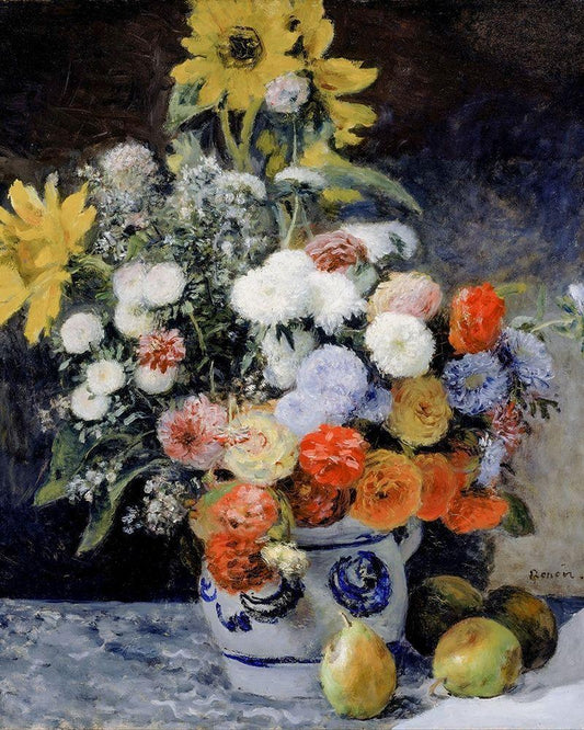 Mixed Flowers in an Earthenware Pot White Modern Wood Framed Art Print with Double Matting by Renoir, Pierre-Auguste