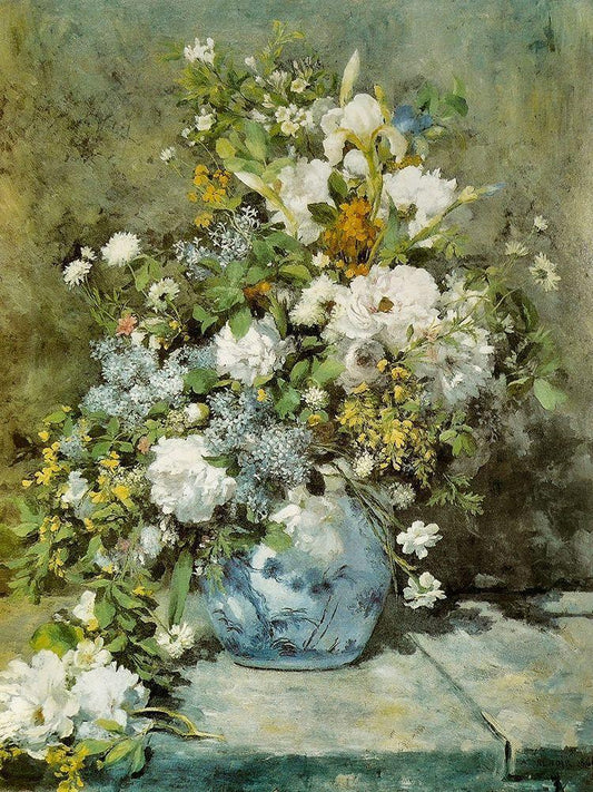 Spring Bouquet White Modern Wood Framed Art Print with Double Matting by Renoir, Pierre-Auguste