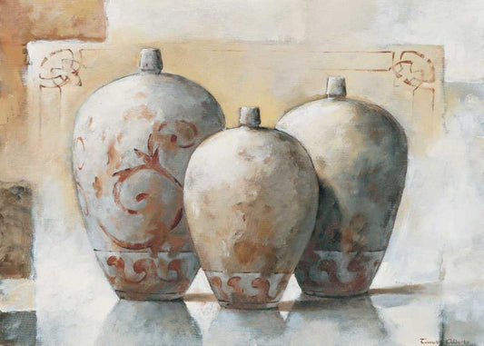 Pottery I White Modern Wood Framed Art Print with Double Matting by Hedy