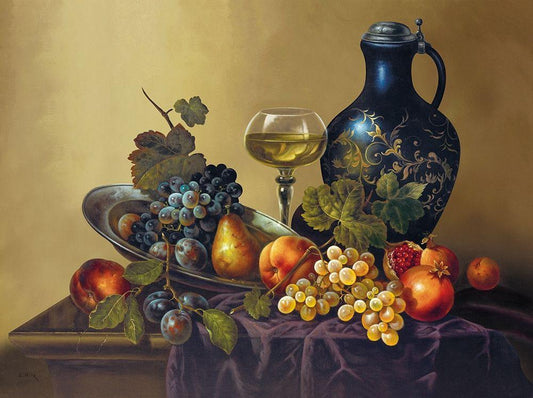 FRUITS AND A GLASS OF WINE White Modern Wood Framed Art Print with Double Matting by Pila