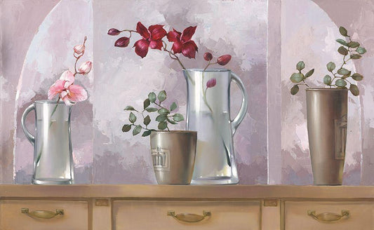 Still-Life WITH GLASSES I White Modern Wood Framed Art Print with Double Matting by v.d. Valk, Karin