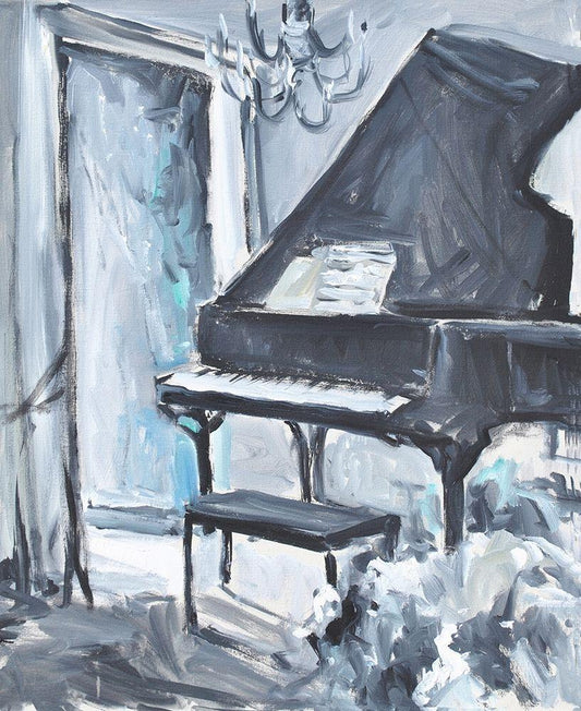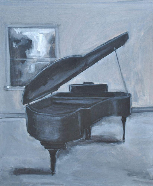 Blue Piano White Modern Wood Framed Art Print with Double Matting by Stevens, Allayn