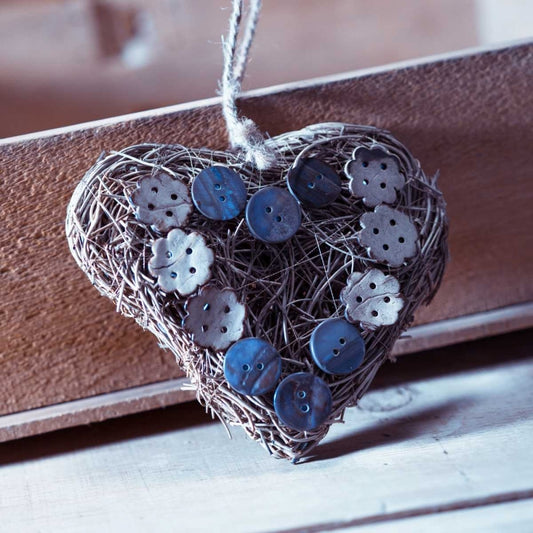 Heart made of straw with buttons White Modern Wood Framed Art Print with Double Matting by Frank, Assaf