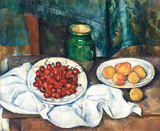 Still Life With Cherries And Peaches White Modern Wood Framed Art Print with Double Matting by Cezanne, Paul