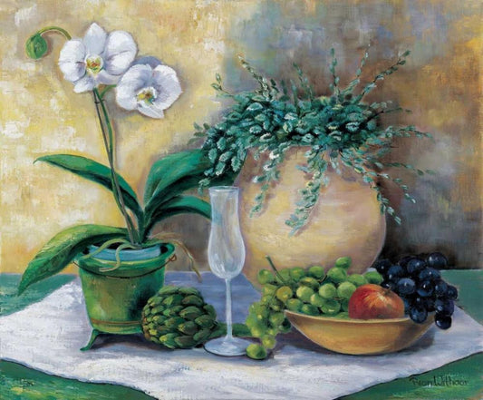 Orchid composition II White Modern Wood Framed Art Print with Double Matting by Withaar, Rian