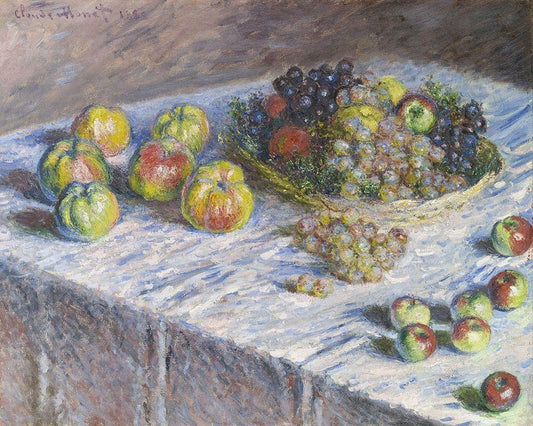 Apples and Grapes White Modern Wood Framed Art Print with Double Matting by Monet, Claude