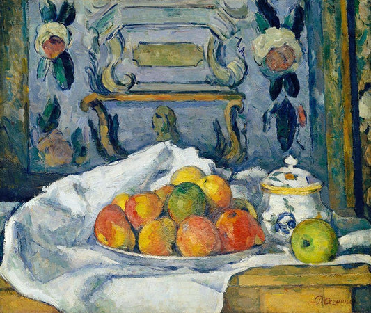 Still Life with Apples White Modern Wood Framed Art Print with Double Matting by Cezanne, Paul