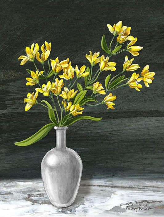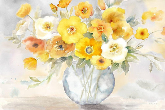 Bright Poppies Vase yellow gray White Modern Wood Framed Art Print with Double Matting by Coulter, Cynthia