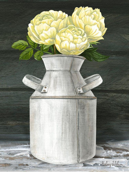 Farmhouse Garden IV-Peonies in jug White Modern Wood Framed Art Print with Double Matting by Wilson, Kelsey