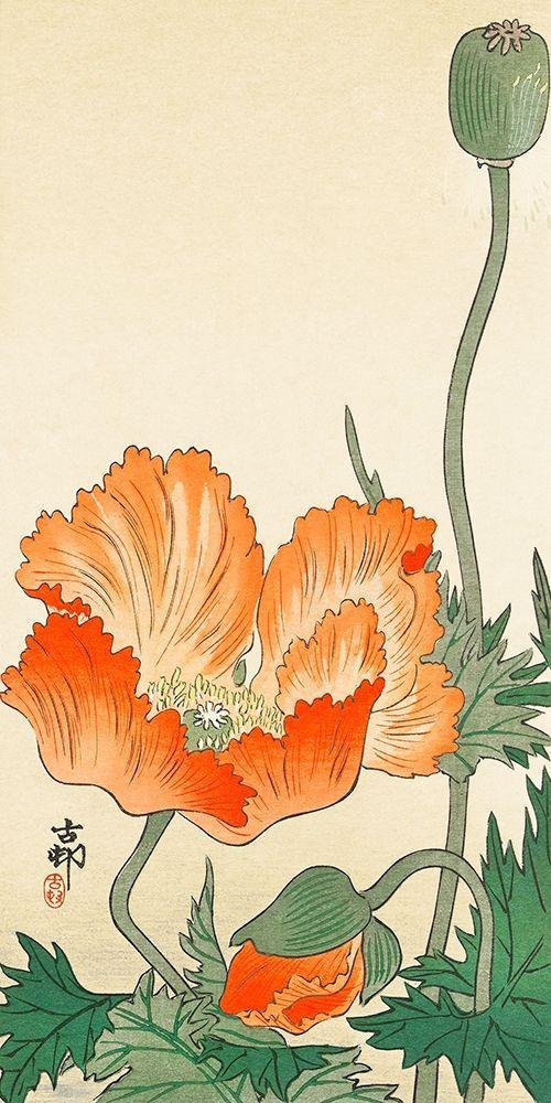 Poppies White Modern Wood Framed Art Print with Double Matting by Koson, Ohara