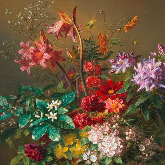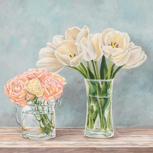Floral composition on a table White Modern Wood Framed Art Print with Double Matting by Robie, Jean-Baptiste