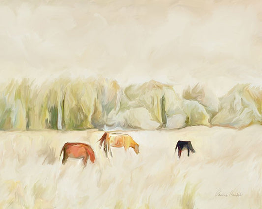 Grazing Cows White Modern Wood Framed Art Print with Double Matting by Murdock, Ramona