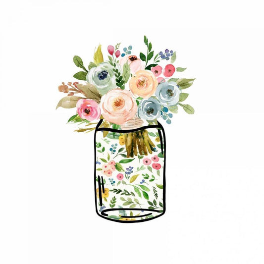 Mason Jar Bouquet White Modern Wood Framed Art Print with Double Matting by Moss, Tara