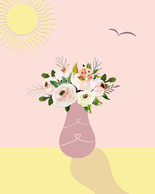 Pink Vase White Modern Wood Framed Art Print with Double Matting by Murdock, Ramona