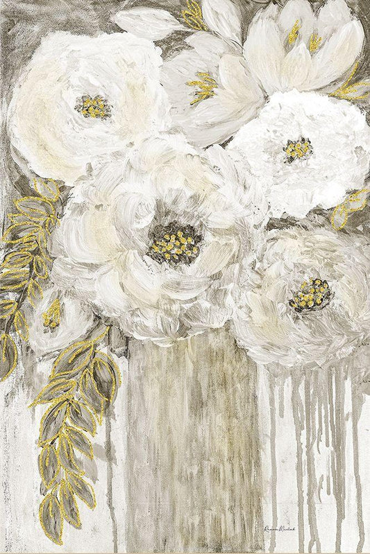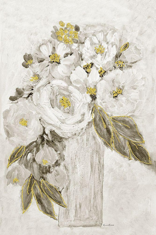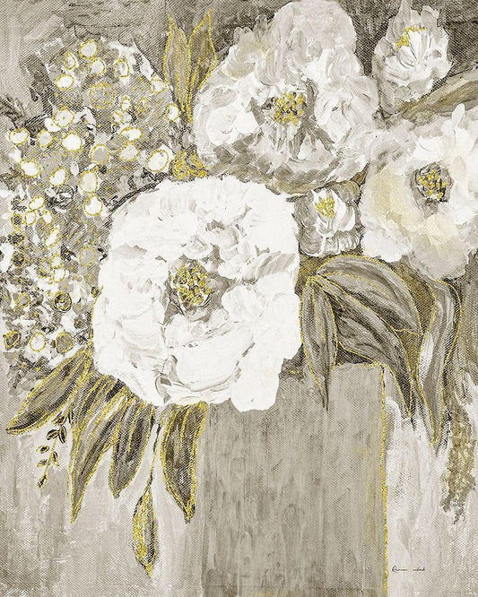 Gold Age Floral I White Modern Wood Framed Art Print with Double Matting by Murdock, Ramona