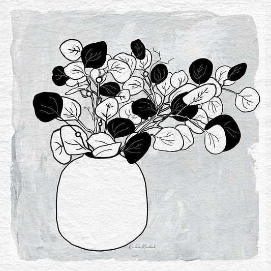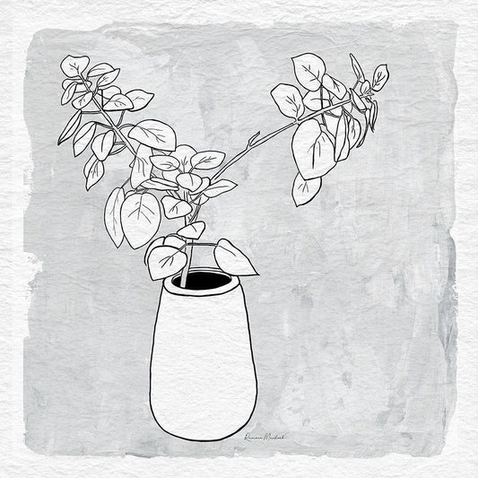 Leafy Branch with Vase White Modern Wood Framed Art Print with Double Matting by Murdock, Ramona