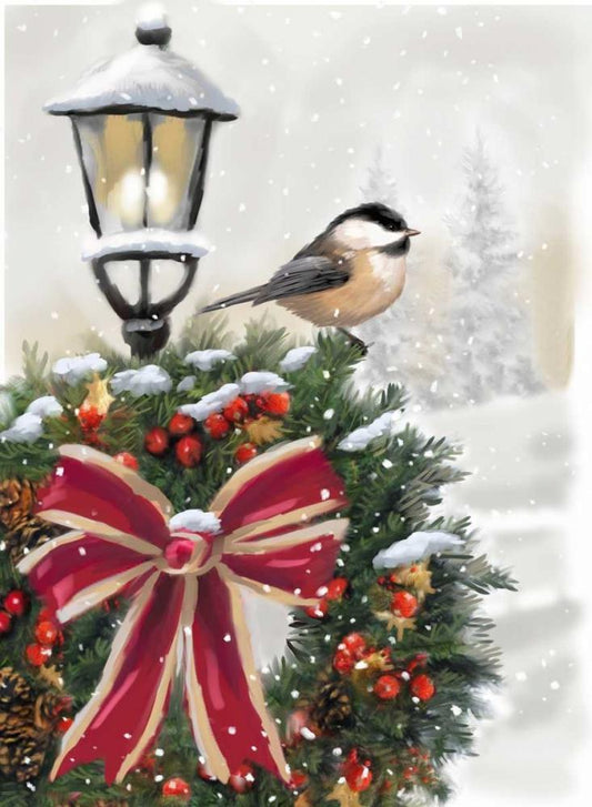 Holiday Wreath White Modern Wood Framed Art Print with Double Matting by P.S. Art Studios