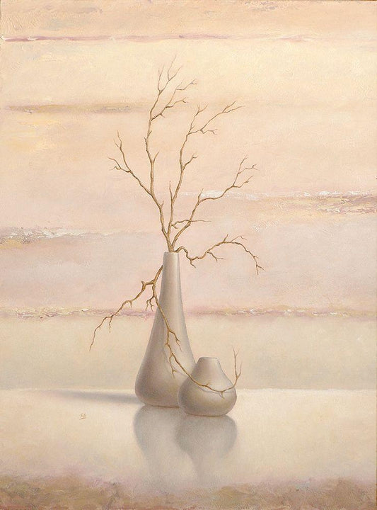 Still Life II White Modern Wood Framed Art Print with Double Matting by P.S. Art