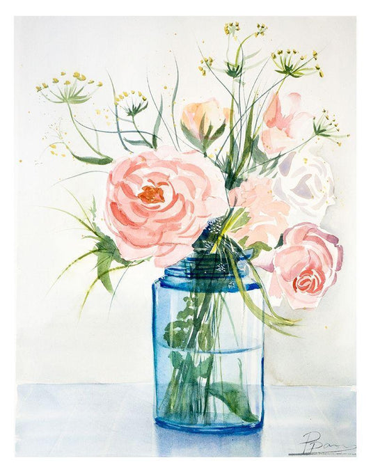Pink Roses White Modern Wood Framed Art Print with Double Matting by Shefranov, Olga