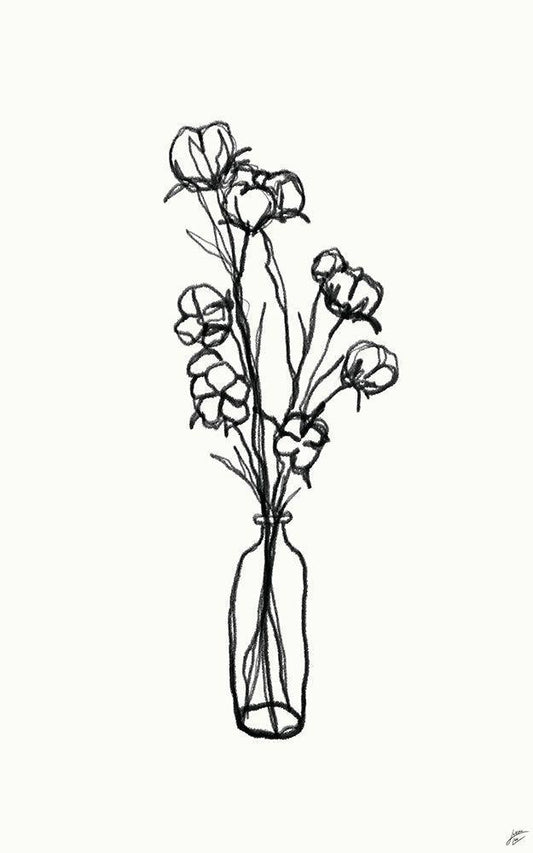 Floral Sketch III White Modern Wood Framed Art Print with Double Matting by Lee, Judson