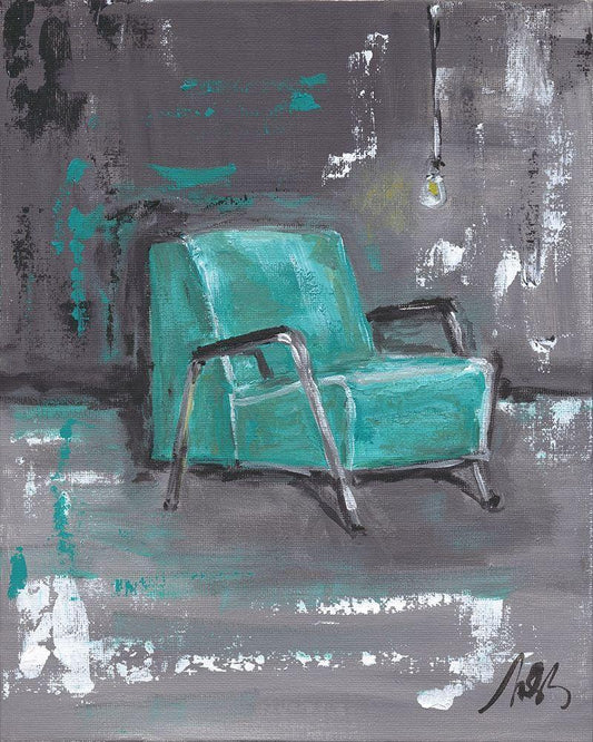 Green Chair White Modern Wood Framed Art Print with Double Matting by Strong, Molly Susan