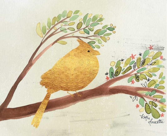 Golden Cardinal White Modern Wood Framed Art Print with Double Matting by Doucette, Katie