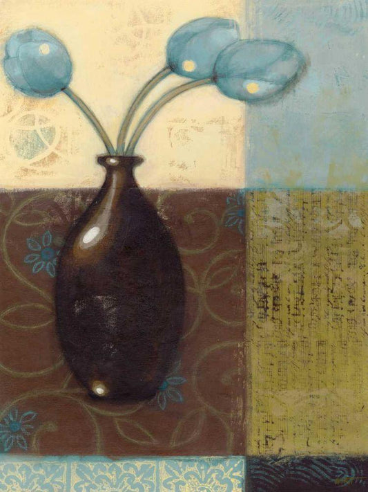 Ebony Vase with Blue Tulips II White Modern Wood Framed Art Print with Double Matting by Wyatt Jr., Norman