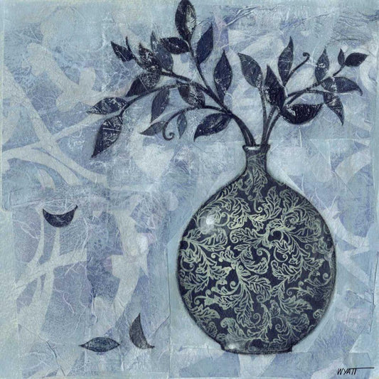 Ornate Vase with Indigo Leaves II White Modern Wood Framed Art Print with Double Matting by Wyatt Jr., Norman