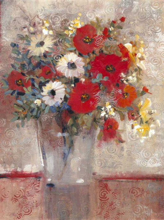 Classic Flowers I White Modern Wood Framed Art Print with Double Matting by Bay, Noah
