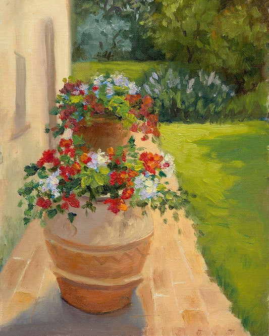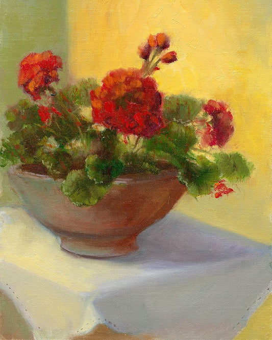 Tuscan Geraniums White Modern Wood Framed Art Print with Double Matting by Weber, Mary Jean