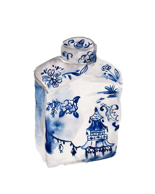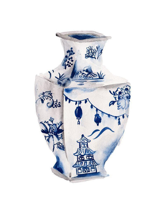 Indigo Vase III White Modern Wood Framed Art Print with Double Matting by Wang, Melissa