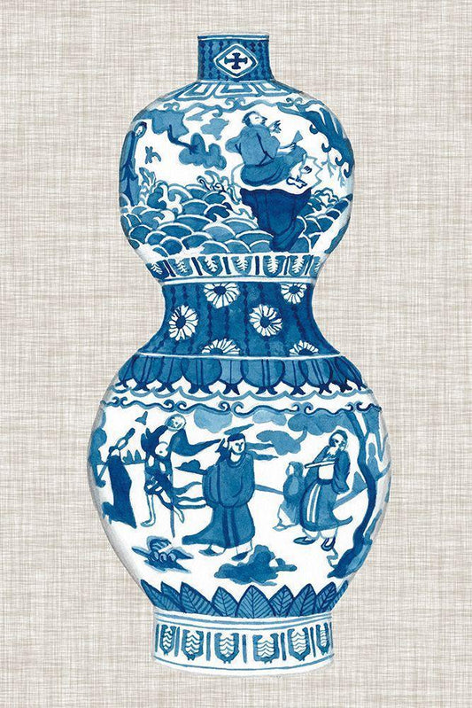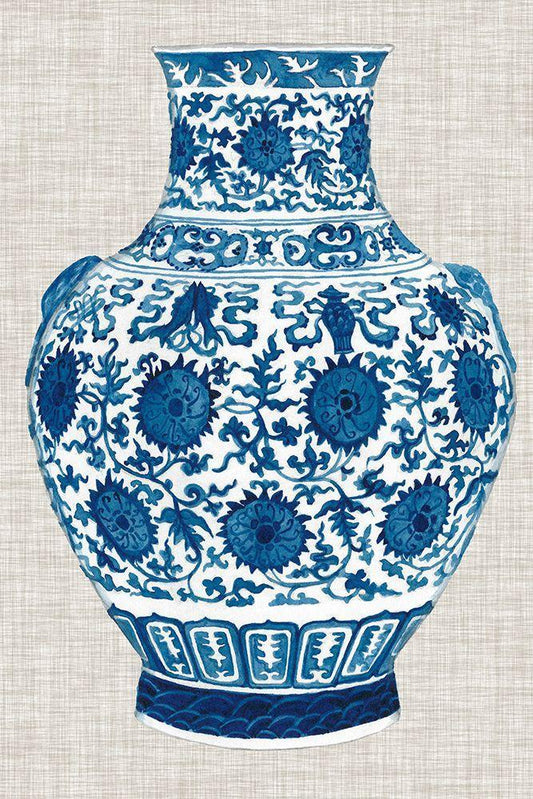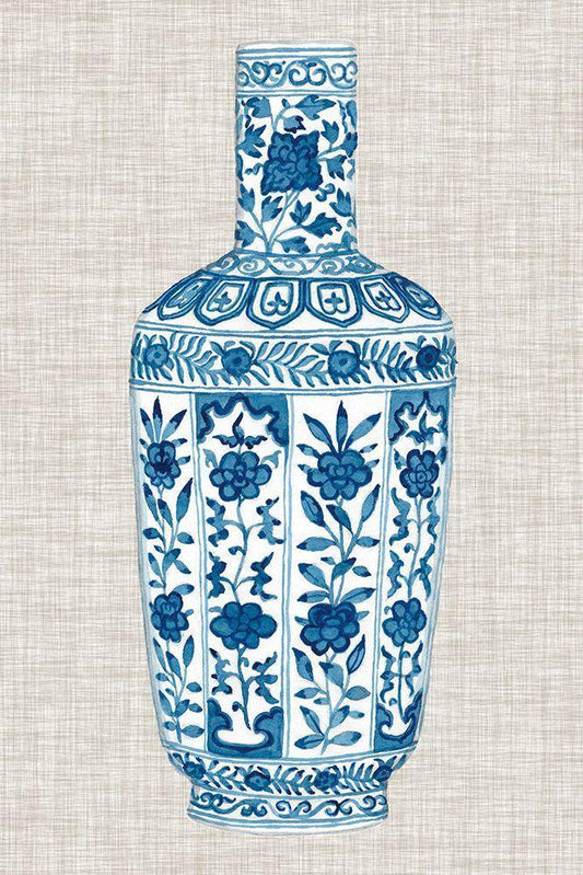 Ming Vase on Linen II White Modern Wood Framed Art Print with Double Matting by McCavitt, Naomi