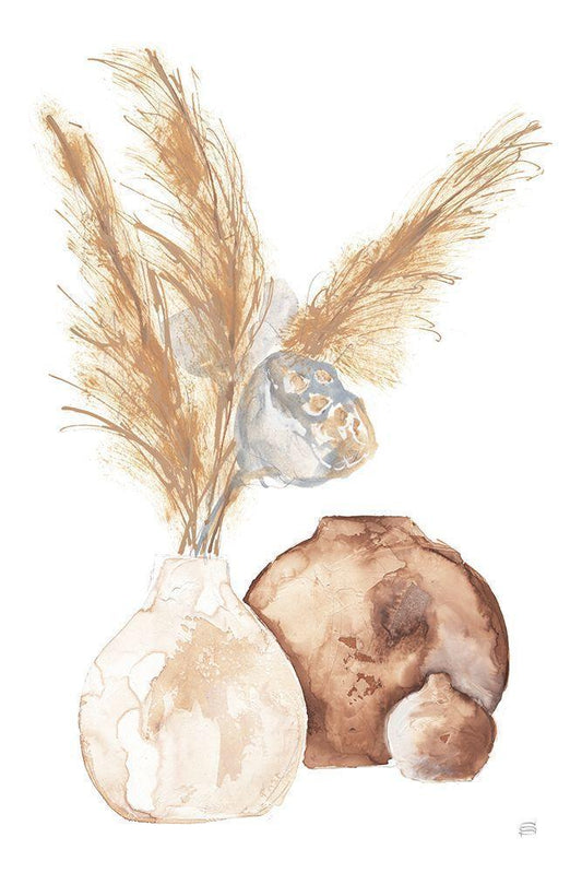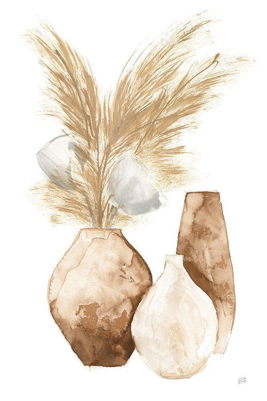 Vase Pampas White Modern Wood Framed Art Print with Double Matting by Paschke, Chris