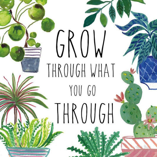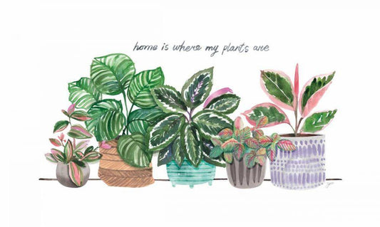 Happy House Plants I White Modern Wood Framed Art Print with Double Matting by Panganiban, Karyn