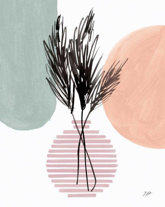 Pampas Stem Still Life White Modern Wood Framed Art Print with Double Matting by Panganiban, Karyn
