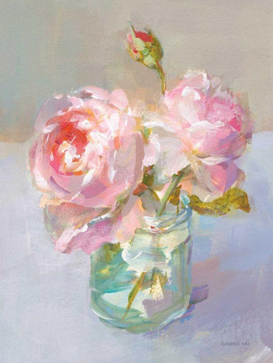 Sweet Roses I White Modern Wood Framed Art Print with Double Matting by Nai, Danhui